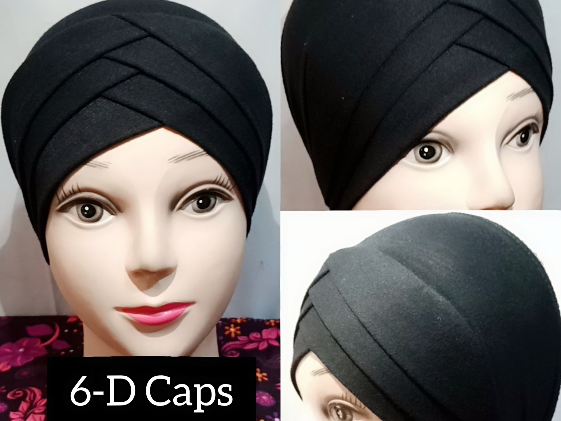 Home HIJAB Cotton Jersy 6-D Cap Black Color Plain